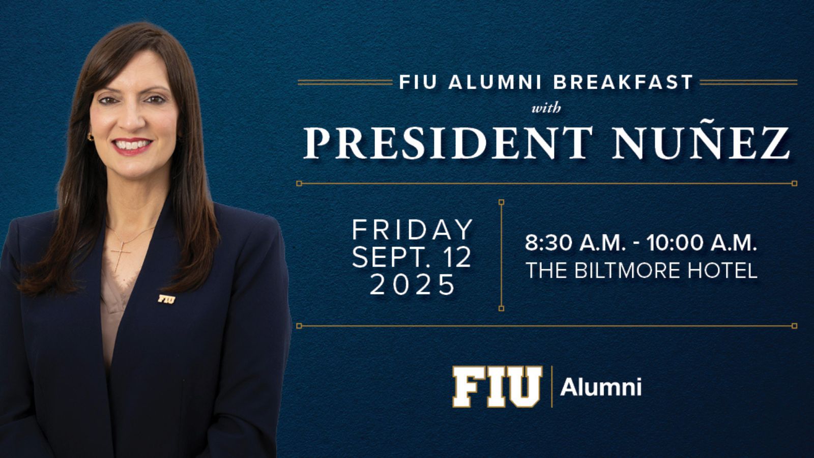 On September 12, we're welcoming FIU's new president, Jeanette M. Nuñez, at an intimate breakfast at The Biltmore Hotel. You’ll have the unique opportunity to learn about how being both an alumna and FIU President drives her vision for the university.